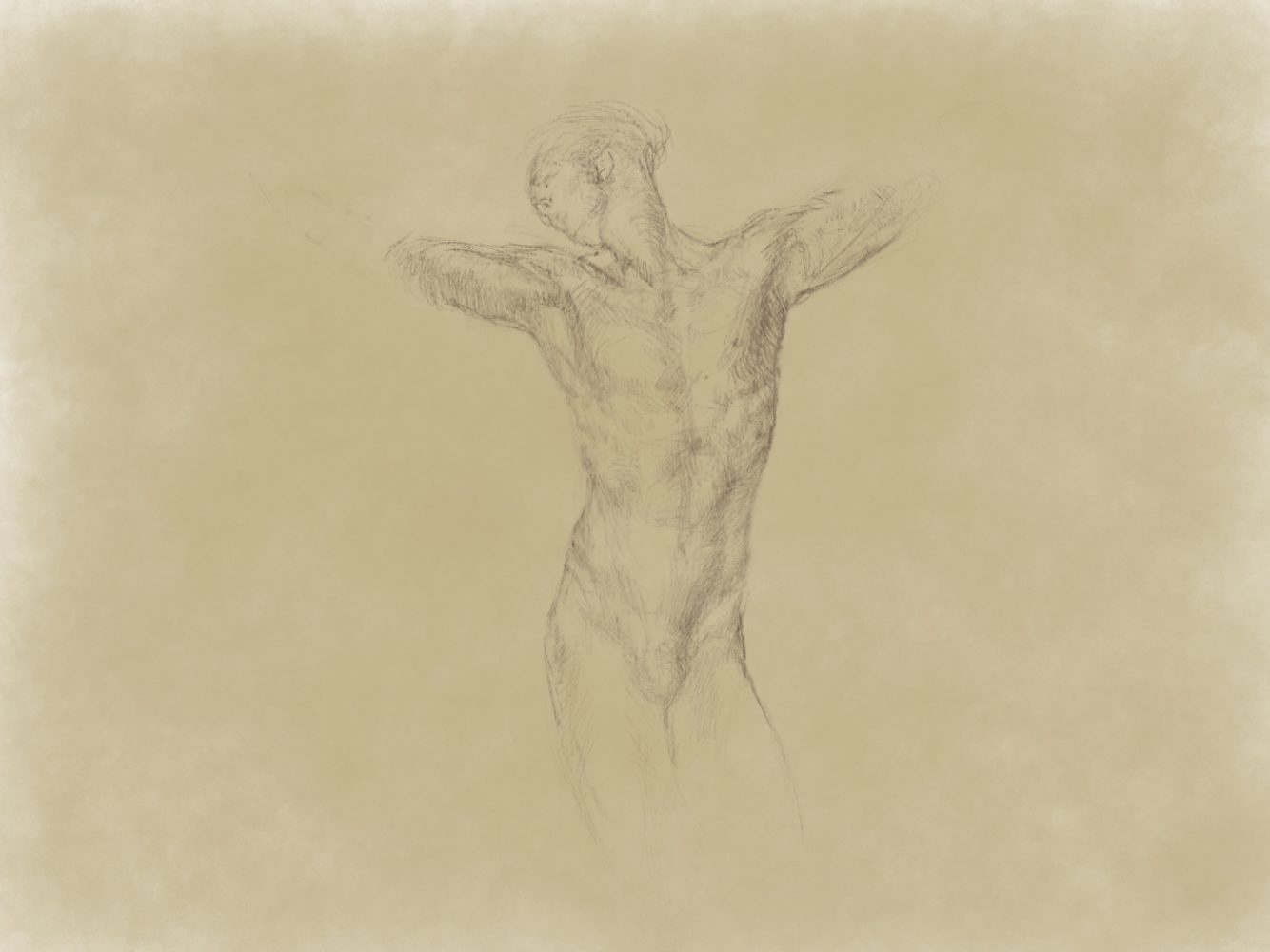 Now let’s take it a step further, to realism that describes full three-dimensionality, including nuances of shading. Even here, certain aspects of reality are simplified and designed to highlight the figures in the best way possible, for the sake of the story. The background is highly simplified into large masses with soft edges, the light on the toddlers and their poses are chosen and designed to show the “drama” 🙂 Because art is not a copy of random reality; it uses reality to tell a story or convey a message.