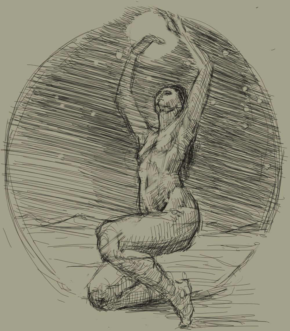 For instance, in this painting, the connection and completion of opposites is the theme. The contrast between light and dark, between cool and warm, male and female. The two opposites complement each other. The idea is simple and is well expressed through a simple, symmetrical, and graphic style that focuses the viewer on the central idea. The painting uses certain aspects of realism: the shape of the human body, the shape of the sun, moon, and stars, the abstraction of the movement of the fabrics. The painting has more stylized, “graphical” elements than realistic, 3D ones, yet without realism, the painting wouldn’t be complete. If the man and woman looked like a stick figure, or a balloon person, for example, the concept would still be charming, but the execution would be lacking. Therefore, a flat, graphical style, filters 3D reality through the lens of shapes. It still employs the 3D information, but simplifies it.