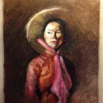 Then, because I couldn’t have the original model posing for me again with the original light (though believe me, I have dreamt of it!!), I recreated the new angle based on the colors and values of the painting combined with this drawing (which was drawn with the aid of pictures). A note to myself was to always take notes of what colors I used in my paintings so that I can easily go back to them if needed.
